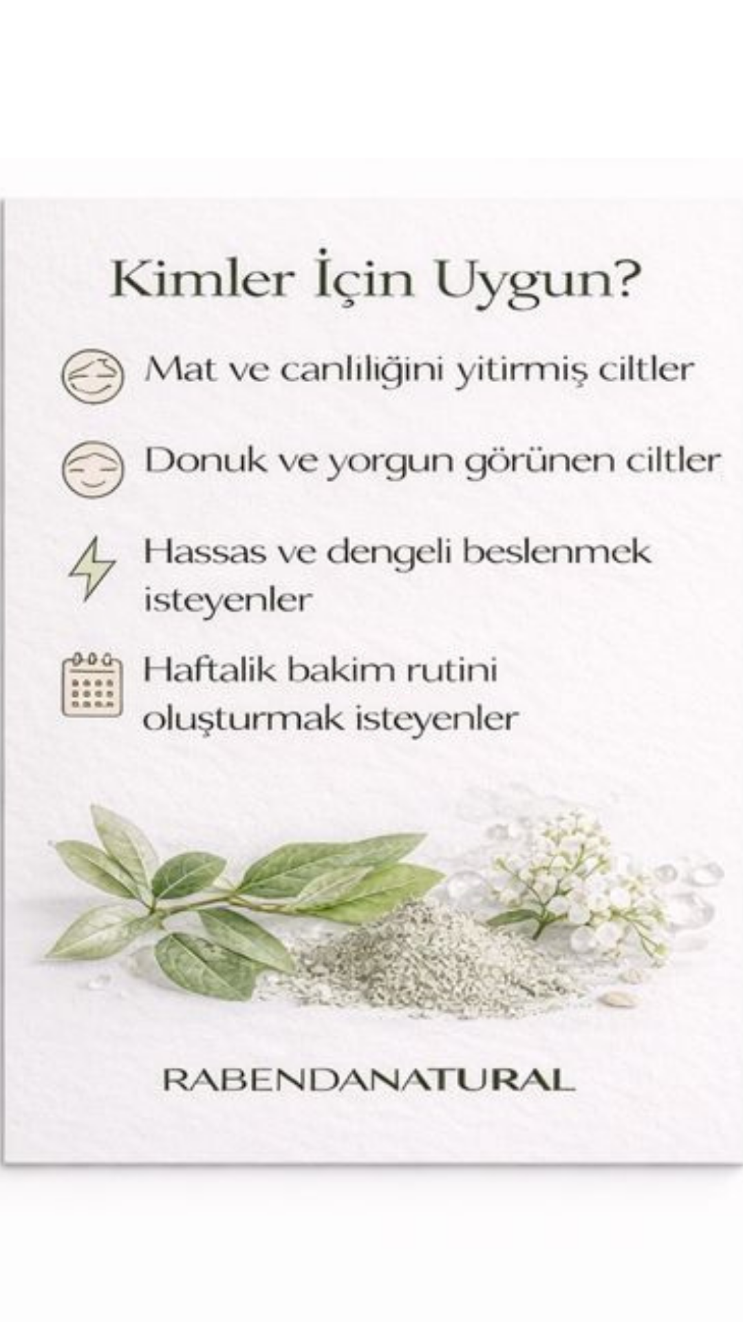 Neden Aydınlatıcı Doğal Cilt Maskesi? Aydınlatıcı Doğal Cilt Maskesi, cildinizin ihtiyaç duyduğu tüm bakımı bir arada sunar. Bu maske ile cildinizi derinlemesine temizlerken, aynı zamanda cildinize doğal bir ışıltı ve canlılık kazandırırsınız. Her uygulamada cildinizi yenilenmiş ve tazelenmiş hissettirecek bu maske, cildinizin doğal güzelliğini ön plana çıkarır.